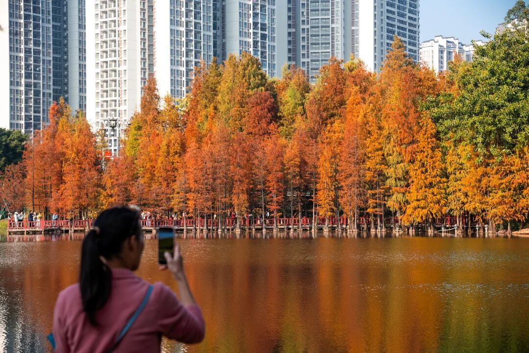 歌词里“水西的落羽杉红写进诗里,萝岗的十里梅林飘入你眼底”,是这片土地的自然馈赠——香雪公园、盈翠公园、创业公园、市民公园等“天然氧吧”环绕,推窗就是满目青绿,秋冬看落羽杉染红天际,赏十里梅林暗香浮动,随手一拍都是壁纸级美景。